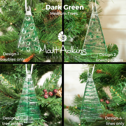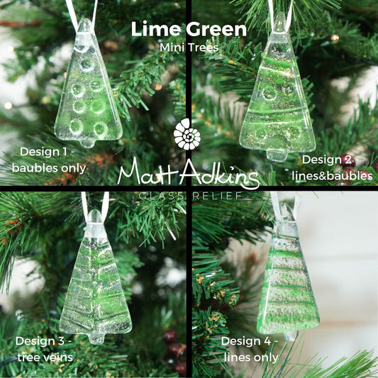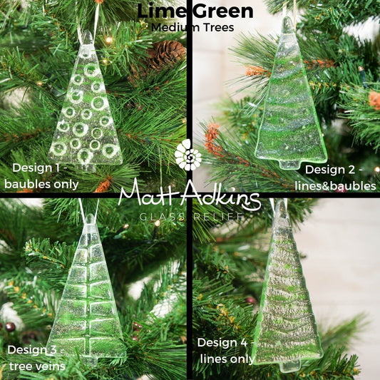 2 to 6 Medium Lime Green Glass Trees - Hanging - 12cm/3 3/4" - with ribbon and organza bag