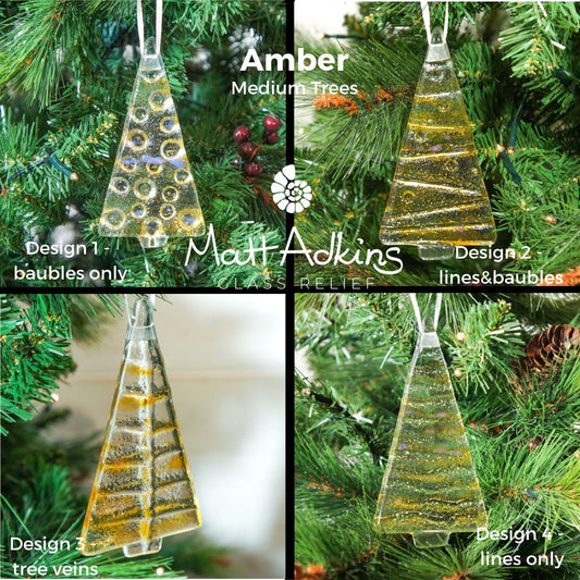 2 to 6 Medium Amber Chritmas trees - Hanging - 12cm/3 3/4" - with ribbon and organza bag