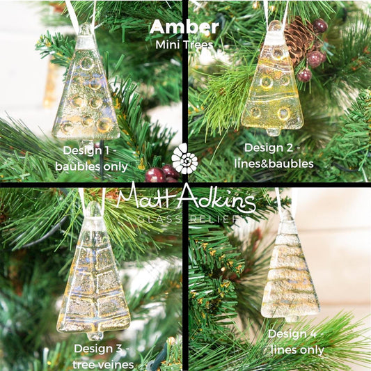 3 to 6 Mini amber gold glass Christmas trees 8x4.5cm (3x1 1/2") - with ribbon and organza bag