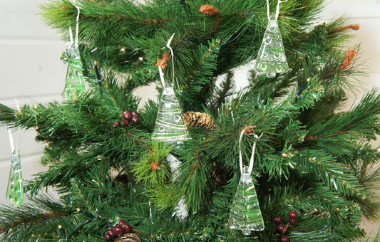 3 to 6 Mini Green Glass Trees - Hanging - 8cm(3") with ribbon and organza bags