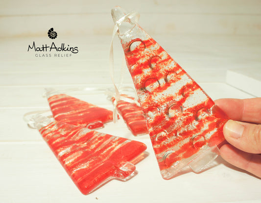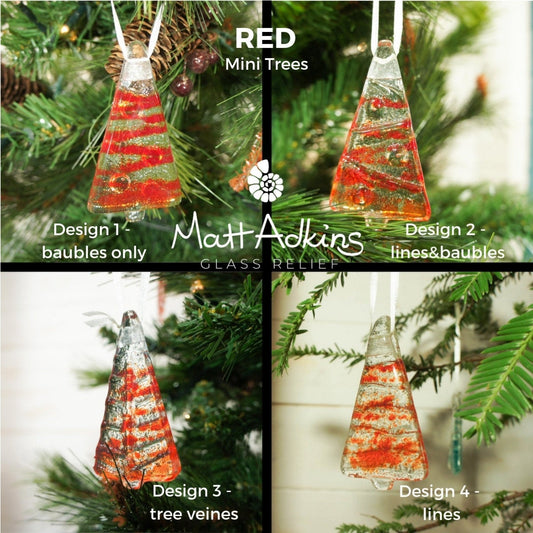 2 to 6 Medium Red Glass Trees - Hanging - 12cm/3 3/4"