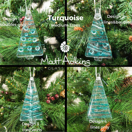 2 to 6 Medium Turquoise Glass Trees - Hanging - 12cm/3 3/4" - with ribbon and organza bag