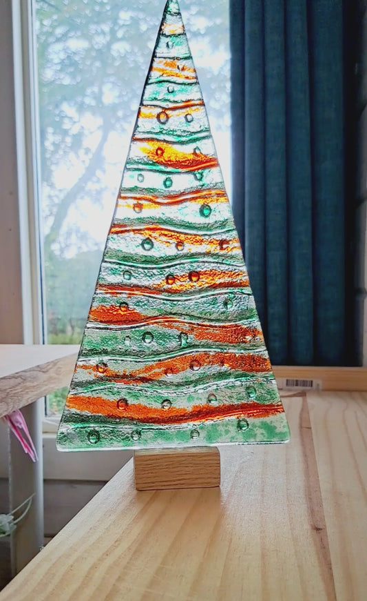 XL Green&Red Fused Glass Christmas Tree Decoration - Freestanding - 32cm/12 1/2" with wooden block (Copy)