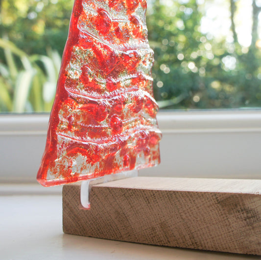 Large Red Glass Tree - Freestanding - 22cm/8 1/2" with wooden block