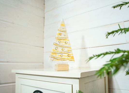 Large Gold Glass Tree - Freestanding - 22cm/8 1/2" with wooden block