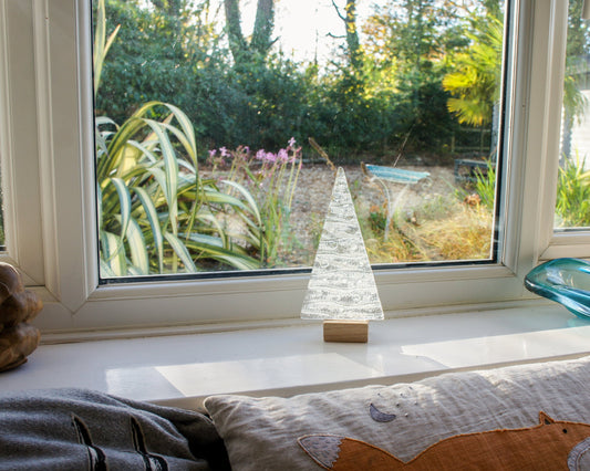 XL White Glass Tree - Freestanding - 32cm/12 1/2" with wooden block