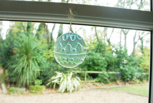 Norwegian Turquoise/Blue Glass Bauble - 12cm(5") - with an organza bag
