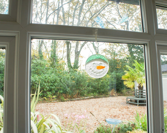 Robin Fused Glass Suncatcher - 12cm(5") with ribbon and organza bag