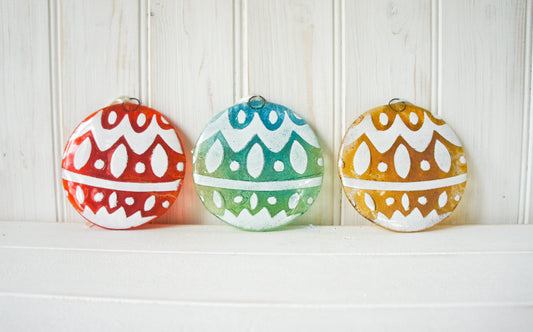 3 Norwegian Glass Baubles - Hanging - 12cm(5") with ribbon and organza bag