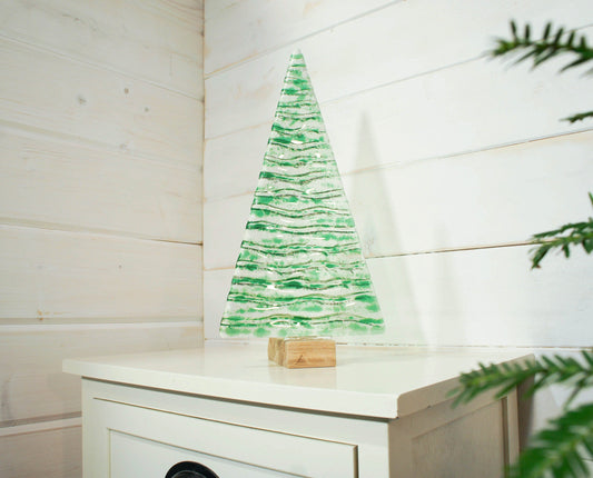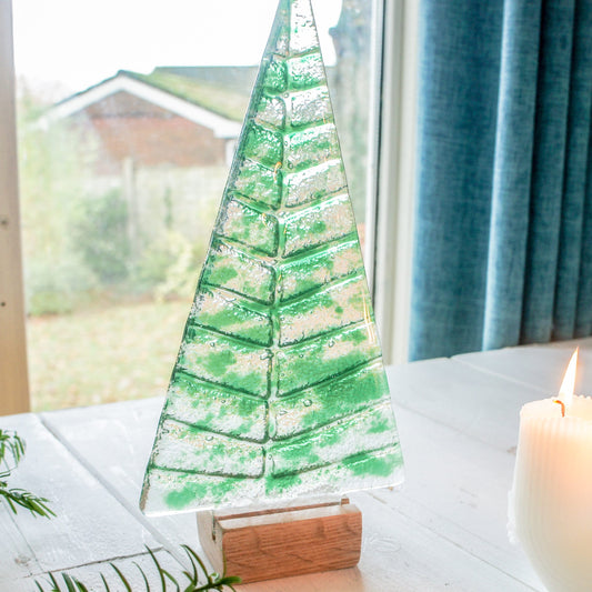 XL Green Glass Tree - Freestanding - 32cm/12 1/2" with wooden block