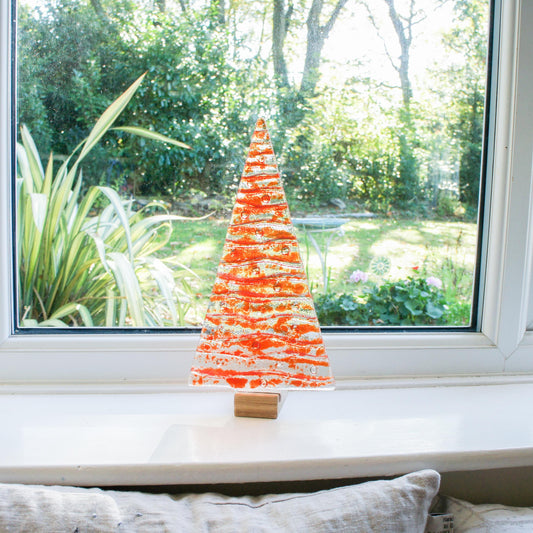 XL Fused Glass Christmas Tree Red 32cm - Freestanding Tree