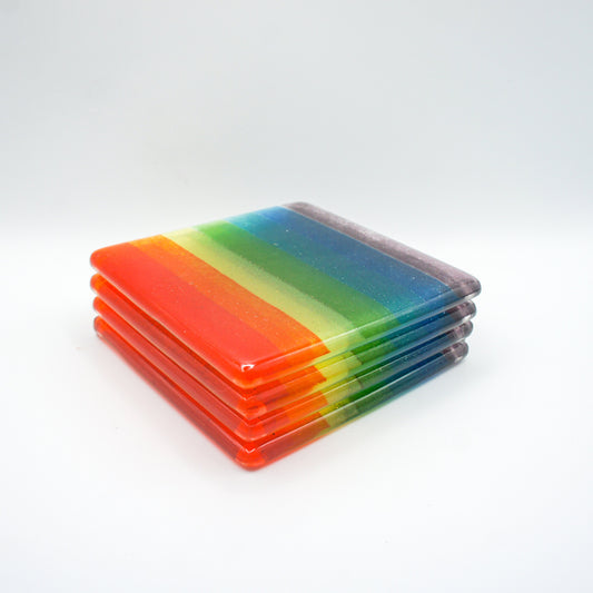Fused Glass Rainbow Coaster - Set of 2, 4 or 6 coasters