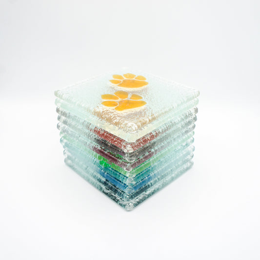 Clear Paw Fused Glass Coaster Set with ribbon - Set of 2, 4 or 6