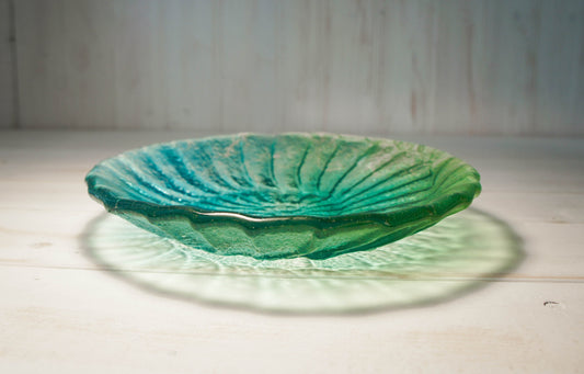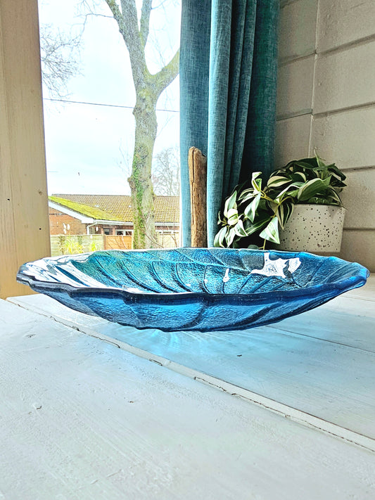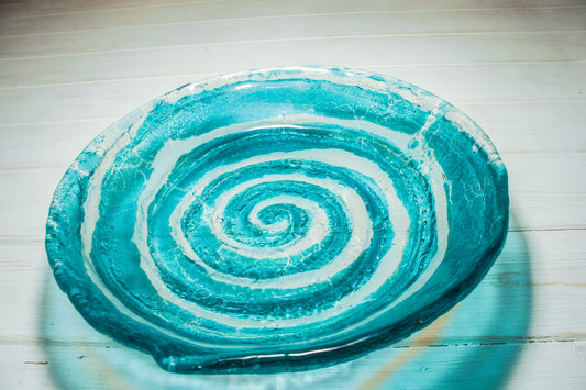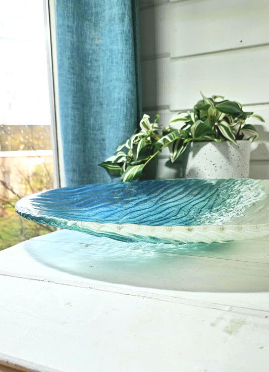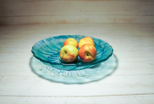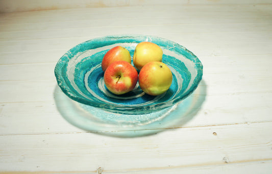 Paradise Glass Bowl 44cm(1/2"), Turquoise Blue Seabed Beach Fused Glass Fruit Bowl, wedding present, dining table centerpiece
