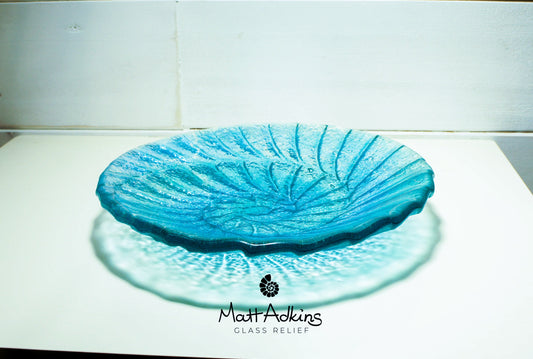Blue Ammonite Fused Glass Bowl 22.5cm(9")