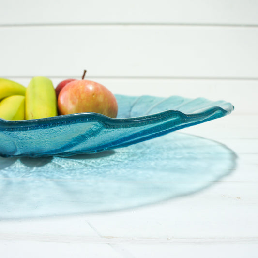 Teal Blue Ammonite Fused Fruit Bowl 44cm(17 1/3"), Large Turquoise Blue Fossil Nautilus Fruit Plate, Beach House Decor, Decorative Bowl