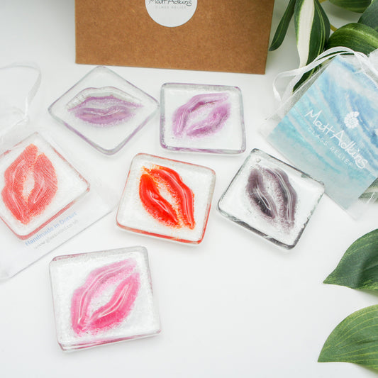 Fused Glass Kiss Lips Pocket Hug in organza bag and gift enveloppe