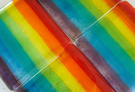 Rainbow Glass Soap Dish 13x10cm(5"x4") | Rainbow Hope Soap Dish | Stripey Rainbow Fused Glass Soap Dish