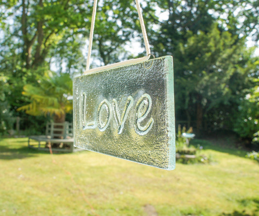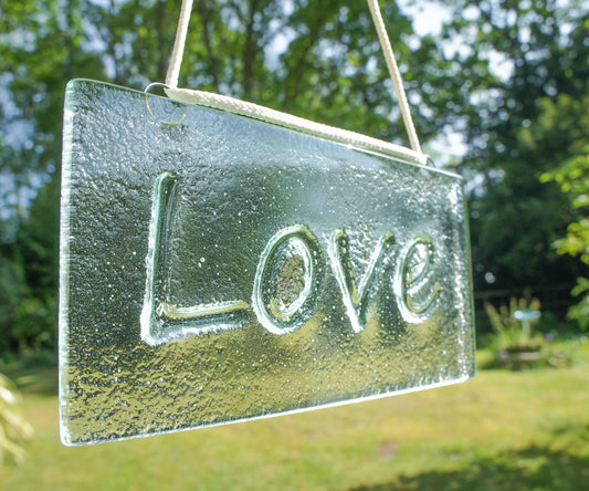 Love Suncatcher 20x10cm(8x4")| Love Sign Fused Glass Clear Hanging Suncatcher | love word sign | Handmade Window Decoration Art