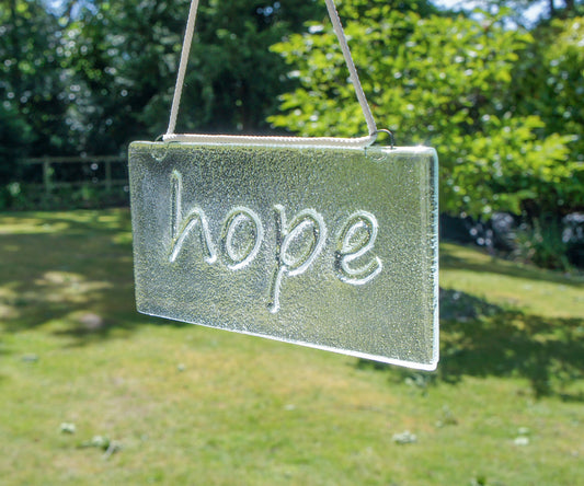 Hope Suncatcher 20x10cm(8x4")| Hope Sign Fused Glass Clear Hanging Suncatcher | hope word sign | Handmade Window Decoration Art