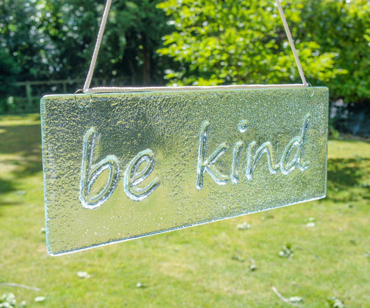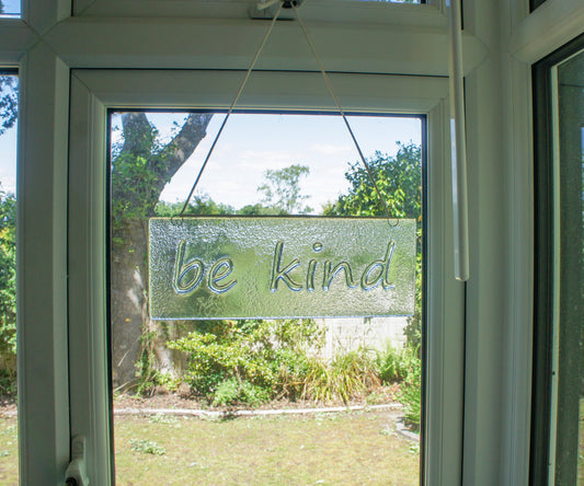 be kind Suncatcher 34x13cm(13 1/2x5") | be kind Sign Fused Glass Clear Hanging Suncatcher | be kind sign | Handmade Window Decoration Art