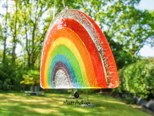 Rainbow Glass Suncatcher 19x10cm(7 1/2x4"), Personalised Memorial Gift Rainbow Fused Glass Suncatcher, Rainbow Bridge, Sea Glass Art