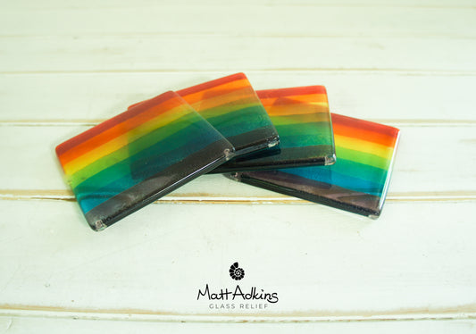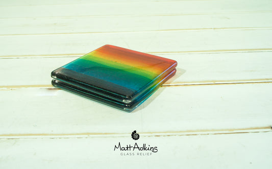 2 Rainbow Glass Coasters | Stripe Rainbow Hope Fused Glass Art Coasters | Set of 2 Handmade Fused Glass Coasters 10x10cm(4x4")| rainbow