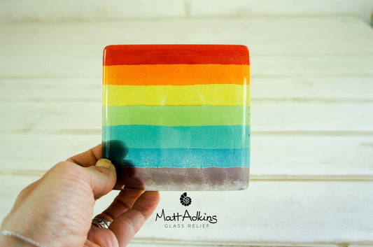 4 Rainbow Glass Coasters | Multicoloured Stripe Rainbow Fused Glass Coasters | rainbow coaster | Set of 4 Glass Coasters 10x10cm / 4x4"