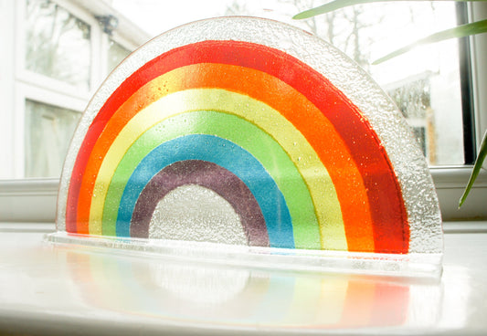 Rainbow Suncatcher Large 29x15cm(11 1/2x6"), Multicolor Rainbow Hope Glass Freestanding Suncatcher, Fused Glass Art, Rainbow Glass