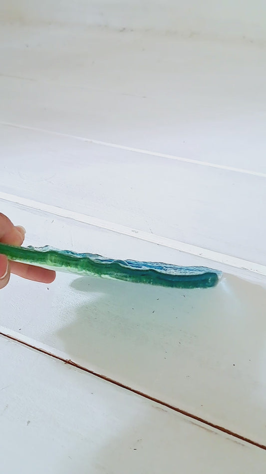 Turquoise Blue and Lime Green Ammonite Glass Soap Dish 13x10.5cm(5"x4)