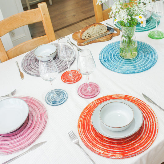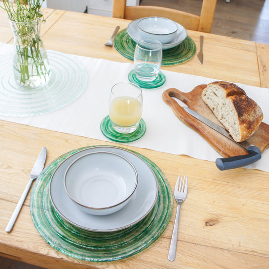Round Glass Placemats 29cm and Coasters Set, fused glass table mats with coasters, handmade dinner set, dinner service, wedding gift