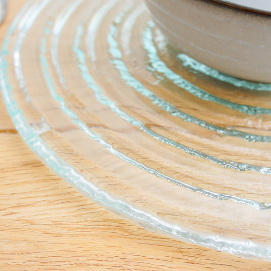 Clear Round Glass Placemats and Coasters Set, fused glass table mats heatproof 29cm (11 1/2) with coasters, dinner set, dinner service