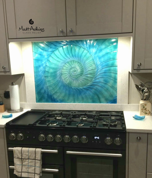 Ammonite Splashback Turquoise Blue - Commission 20" high * 24" wide (61x51cm)