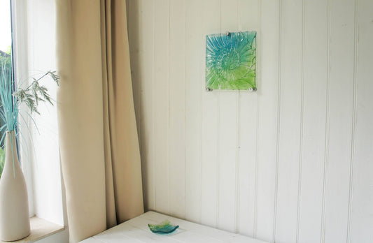 Discover our range of handmade fused glass art including our bowls and dishes, our coasters, freestanding wave panels , wall wave panels, framed sea art and also our wall ammonite panels / framed ammonites.