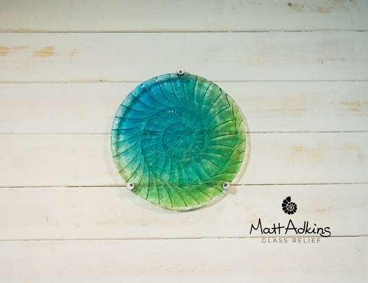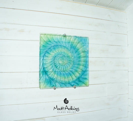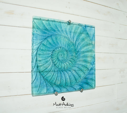 Ammonite Wall Panel - Large Square - Swirl Turquoise Blue Green - 40cm(16") with fixings