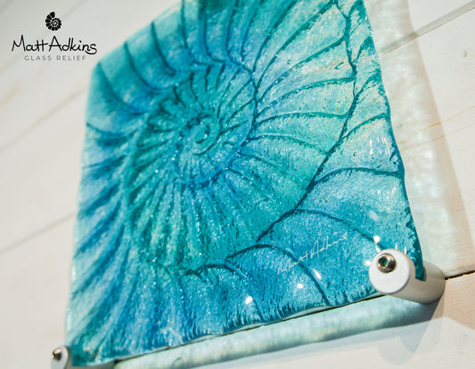 Ammonite Wall Panel - Small Square - Turquoise Blue - 22cm(9") with fixings