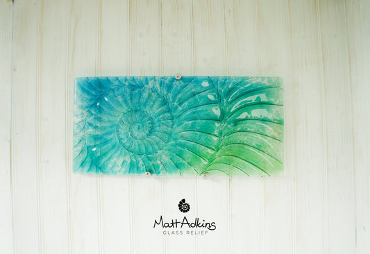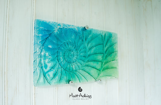 Ammonite Wall Panel - Large Landscape - Swirl Turquoise Blue Green - 56x26cm(22x10") with fixings