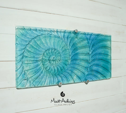 Ammonite Wall Panel - Medium Landscape - Turquoise Blue - 42x22cm(16x9") with fixings