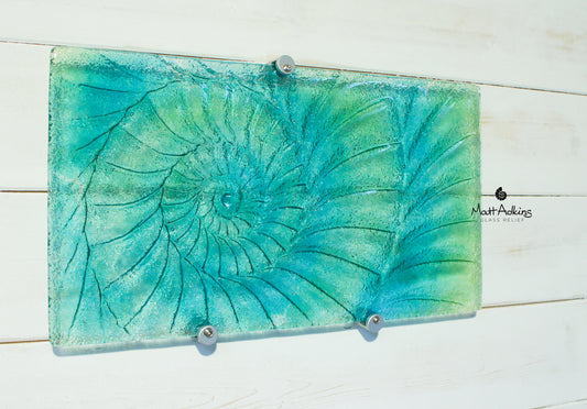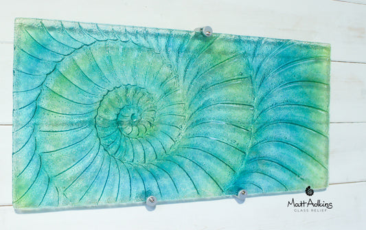 Ammonite Wall Panel - Medium Landscape - Turquoise Blue Green - 42x22cm(16x9") with fixings