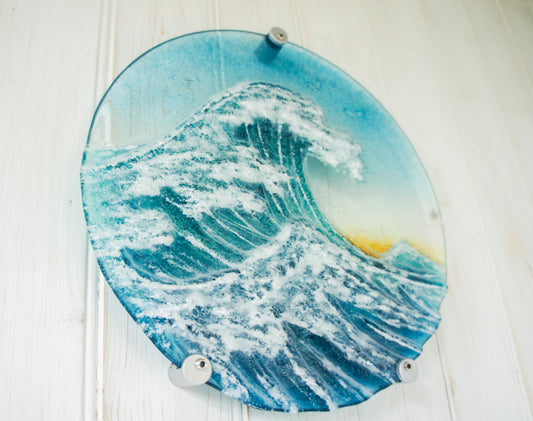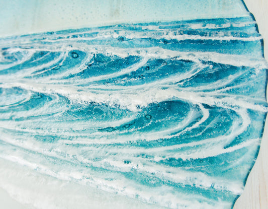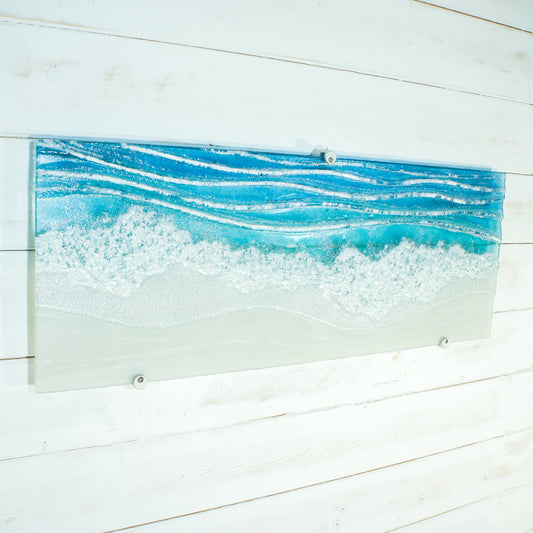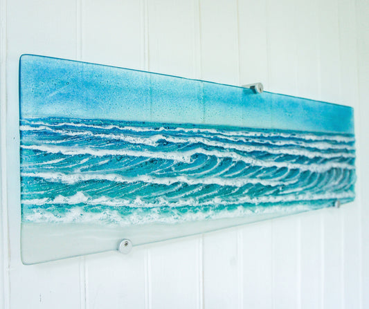 Wave Fused Glass Wall Art 40cmx20cm(15" 3/4 x 7" 7/8) with fixings