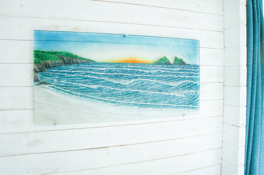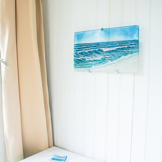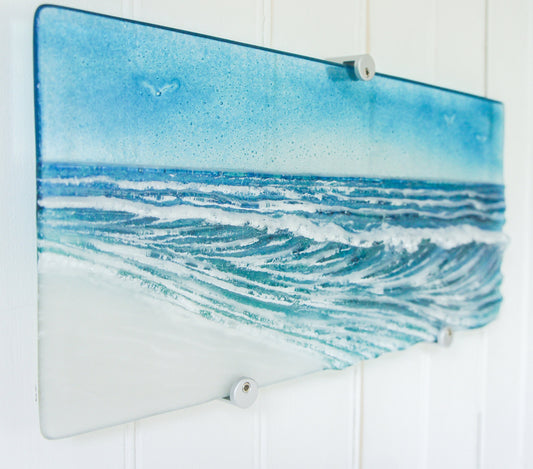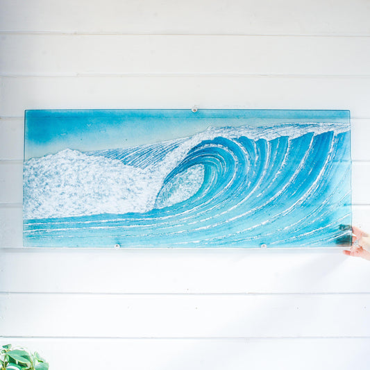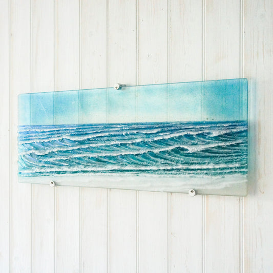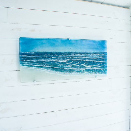 Large Panoramic Glass Wave Art 70x26cm(28x10") with fixings