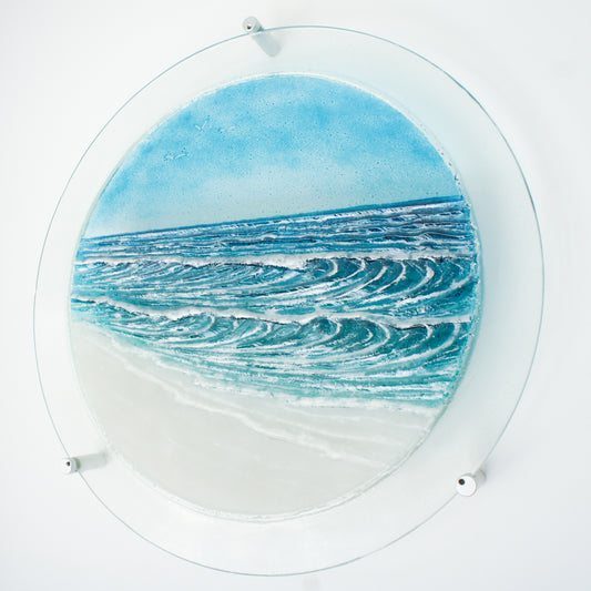 Round Wave Fused Glass Wall Art Round 29cm (11.5") with fixings